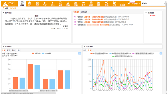 南方新材料衡陽運營中心客戶于2015年8月安裝我公司砼友ERP集團版管理系統(tǒng),旗下已有4個站已經(jīng)安裝我司ERP管理系統(tǒng),磅房管理系統(tǒng),智能調(diào)度刷卡系統(tǒng),車輛排隊系統(tǒng),并數(shù)據(jù)上傳總部ERP集團版管理系統(tǒng),由總部直接對數(shù)據(jù)進行統(tǒng)計,分析,結(jié)算,實時查看生產(chǎn)數(shù)據(jù),對數(shù)據(jù)進行統(tǒng)一管理。。整合了旗下的資源充分利用,對回款不能及時收回、各攪拌站混凝土價格隨意報價,原材料的采購不規(guī)范,配件的采購不規(guī)范的現(xiàn)象加以遏制,其中ERP管理系統(tǒng)工作流直接進行了手機進行了工作效率,部門與部門間的工作,上級與下級之間的工作能夠做到隨時隨地辦公,讓整個管理工作得到提高,規(guī)范了各部門的工作。