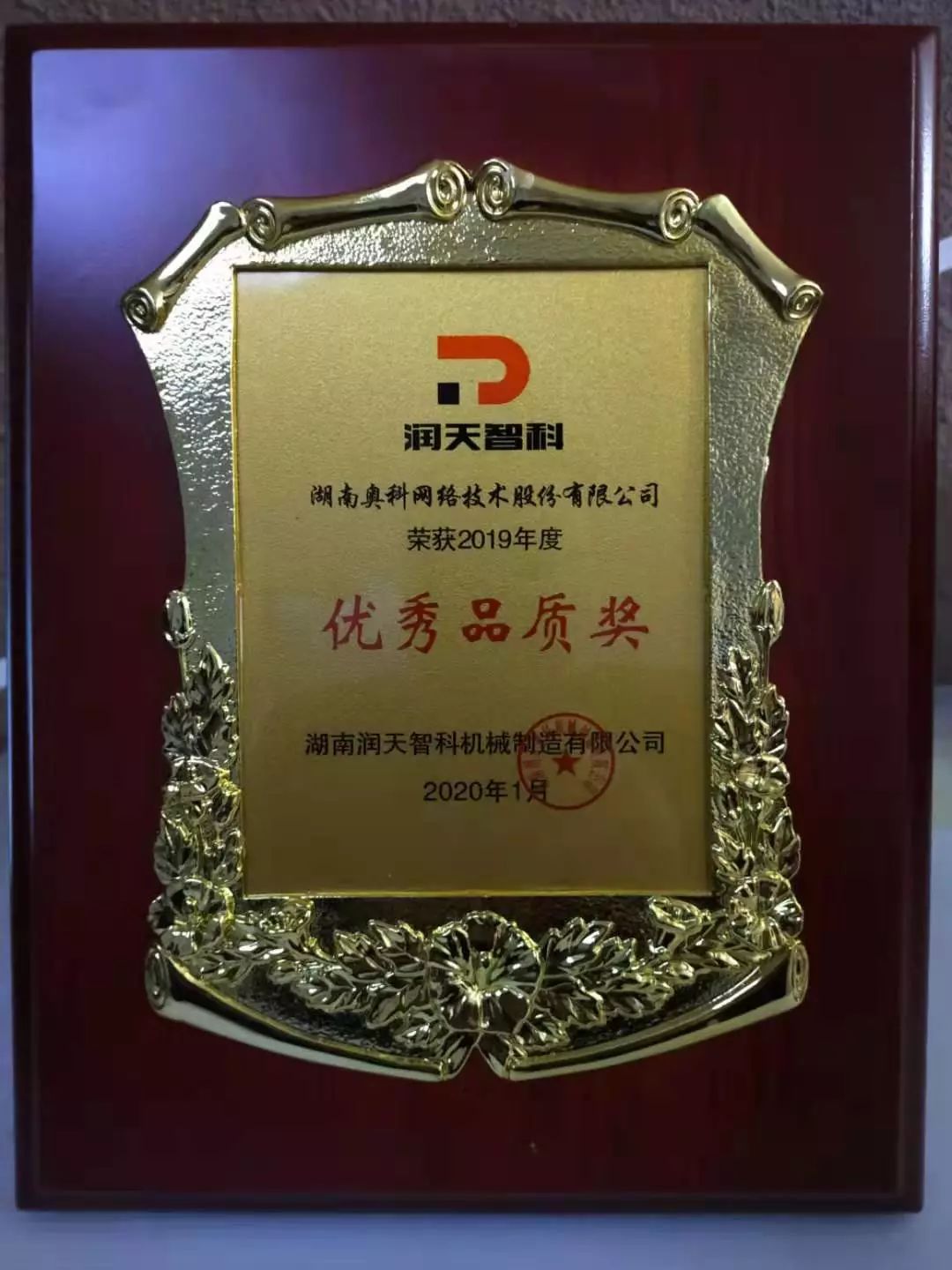 合作共贏,共鑄輝煌!湖南奧科網(wǎng)絡(luò)技術(shù)股份有限公司喜獲湖南潤天智科機械制造有限公司2019年度“優(yōu)秀品質(zhì)獎”。
