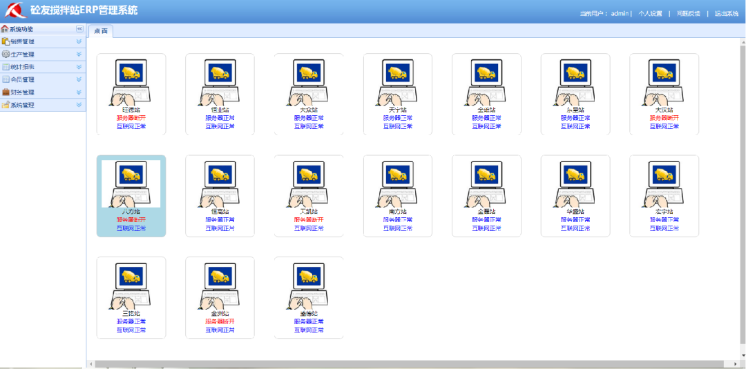 砼友ERP系統協會版專為混凝土行業(yè)協會提供遠程數據監(jiān)控、遠程鎖定、超標預警等功能,幫助協會對會員單位進行統一管理,及時準確掌握各單位的實時生產數據、供貨單位名稱、混凝土規(guī)格型號、數量及各階段生產總量等,規(guī)范商品混凝土市場,系統主要功能有: