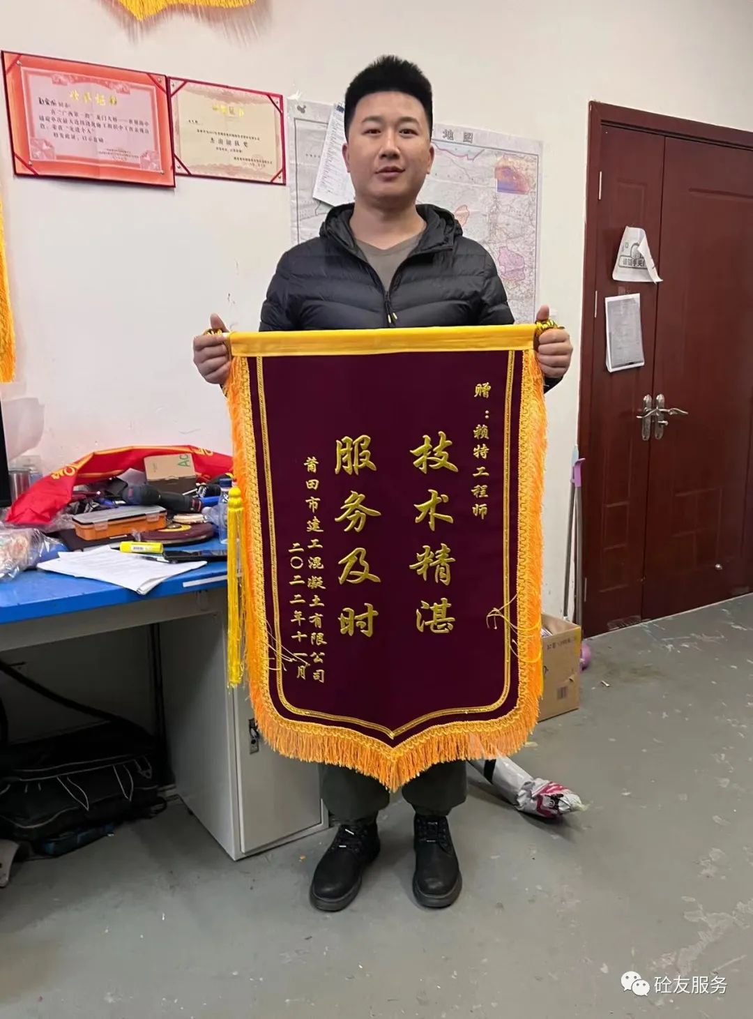 21日早上7點不到,賴工已經(jīng)抵達工地!再次與現(xiàn)場工作人員確認(rèn)問題,此次事故對攪拌站各系統(tǒng)造成的影響面廣、處理難度大。賴工在確定故障原因后,隨即投入了緊張而有序的工作:仔細焊接線路、精確調(diào)整參數(shù)、嚴(yán)格校對數(shù)據(jù)、反復(fù)測試驗證。經(jīng)過用4個小時的不懈努力,賴工不僅完美修復(fù)了所有故障,還對系統(tǒng)進行了深度維護。21日下午,攪拌站順利恢復(fù)了正常生產(chǎn)!客戶公司上下均對賴工的服務(wù)態(tài)度和技術(shù)能力高度認(rèn)可,并贈與錦旗表示感謝。