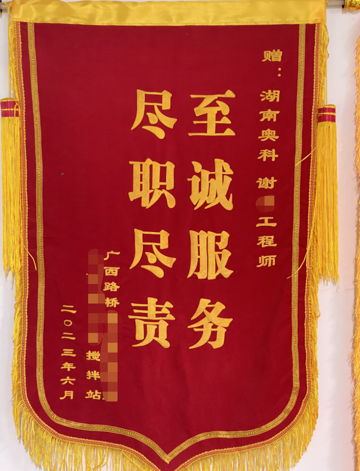 2023年8月,砼友工程服務(wù)中心收到客戶廣西路橋某項目部攪拌站送來的一面錦旗,這究竟是怎么一回事呢?