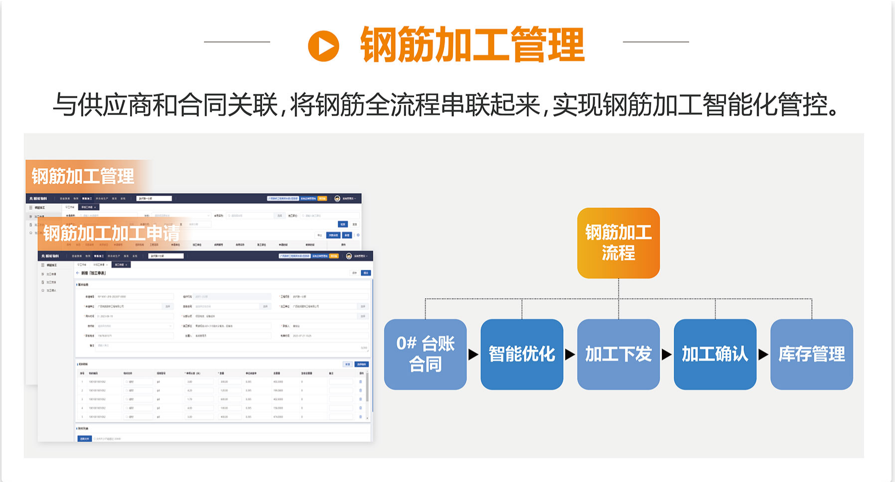 施工人員根據(jù)現(xiàn)場(chǎng)施工進(jìn)度,線上申請(qǐng)鋼材加工計(jì)劃,嚴(yán)格按需求申請(qǐng)。