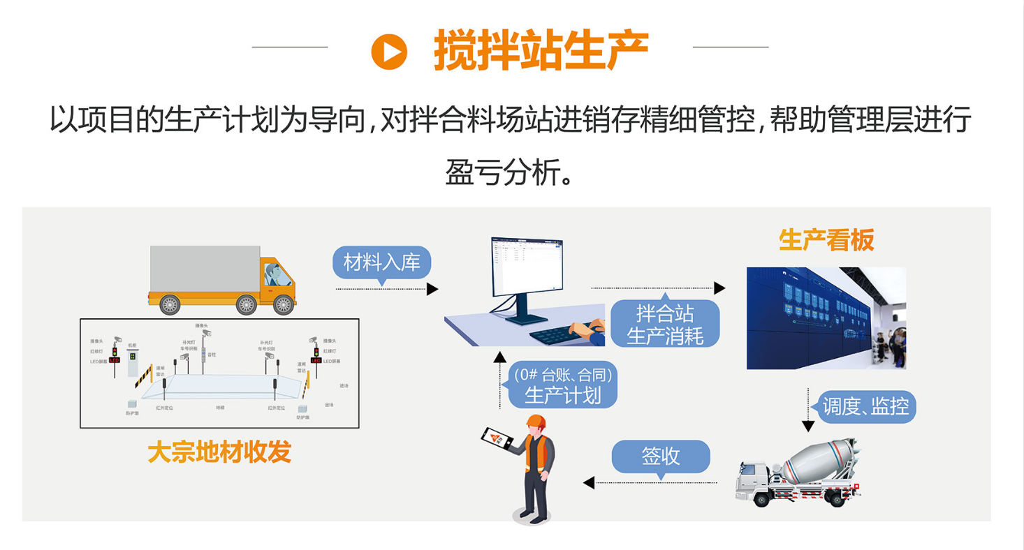 平臺(tái)主要包括物資管理、鋼筋加工、拌合站生產(chǎn)、加油管理等功能: