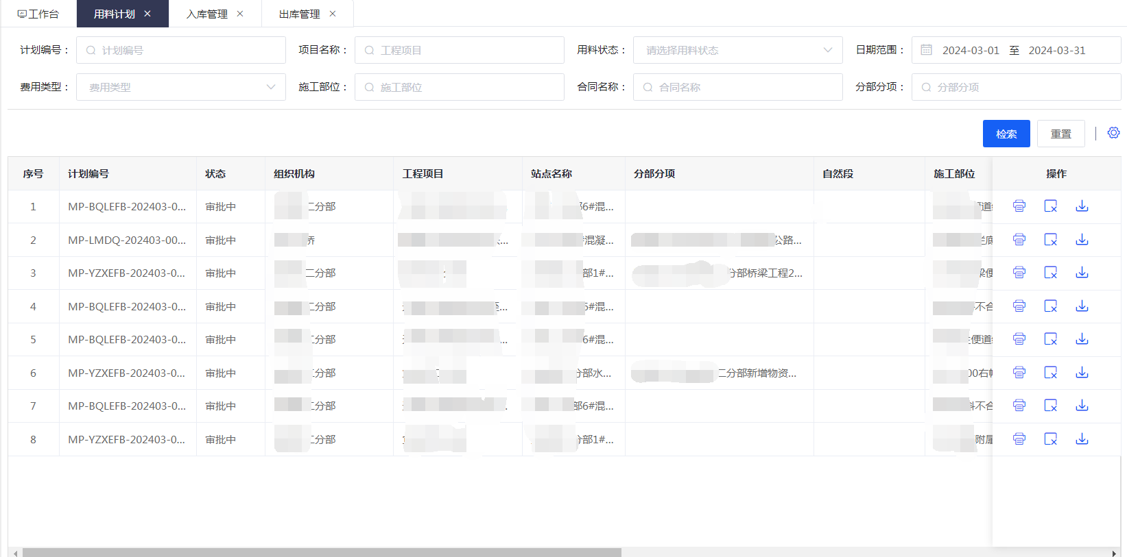 我司的全物資管理平臺(tái)包括拌合站生產(chǎn)、物資管理、鋼筋加工、加油管理等模塊,將施工企業(yè)全部物資(大宗材料、鋼筋、交安材料、油料等)分部分項(xiàng)管控,解決企業(yè)物料管理痛點(diǎn)、項(xiàng)目現(xiàn)場(chǎng)收發(fā)存管理難點(diǎn)問題,幫助企業(yè)實(shí)現(xiàn)物料高效供給、成本有效控制、過程動(dòng)態(tài)監(jiān)管。