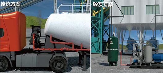 車載系統(tǒng)油耗為每噸粉料1.5元左右(參考油價6元/升)砼友低壓粉料輸送系統(tǒng)每噸耗電0.6度約0.5元(參考電價0.7元/度)。